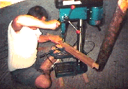 12/7/95 Made a ply pattern of the cockpit side starboard we had just routered yesterday, and routered the portside likewise. We were thinking then about the timber needed to batten this upper edge of the cockpit sides. The bit we used for clamping was a short section of the remaining timber set aside for the toe-rails. Decided to retrieve the long lengths of this timber set aside for the toe-rails from out of the timber stack. What long lengths they were too, about 17'. Two of them. It is a shame to cut up such long lengths, we will not get any so long again. Lifted one onto deck to see what it would look like as a toe-rail. Problem was it needed both of us to hold it, and then neither of us could get off the boat to have a look at it. Got the steps out and fixed the forward end of the length on to the bow with masking tape , whilst one of us bent and held the other end, the other person was able to take a look. Should we start with the length forward or aft. Neither of us could decide forward or aft. What an enormous decision to make. We pondered over it for what seemed like hours. By now it was 18:00pm and we were bubbling with enthusiasm to work – strangely enough. Thinking about starting forward with the timber, but then maybe aft. Oh no. How and when can we make our mind up. Will need some bolts anyway to pass right thru the toe-rail and the deck as it needs to be very strong. Decided to leave this for now. 14/7/95 Much thought decided us to maybe make do with the iroko for making the companionway hatch and used the money saved to buy a pillar-drill. This drill would enable us to do all sorts of jobs, especially for the boat. Popped out to local tool shop and came back with a 16 speed Pillar Drill plus mortise attachment and three new mortise chisels. This morning , and as it turned out all day, was cold, sunny and very windy, with threatening rain showers. Checked again at the Stainless Steel workshop in the boatyard. The tabernacle sheets had been cut ready , and they would be picked up this afternoon , we could collect in the morning. Set up the pillar drill and tried all the speeds and tried the mortiser etc. It all works very well. Brass was drilled ok on a slower speed. Then set up, having lifted the drill out of the van, making some wood dowel plugs. So much easier to do and much less wood wasted with the pillar drill. It was 20:30pm when we packed up , washed, changed and into the bar by 21:00pm, just in time for eats. 15/7/95 Awoke 7:00am eager to collect our stainless steel tabernacle pieces. We could not wait. Popped out about 5 past 9, spotted the pieces, or at least 3 of the four, but no patterns. Found the chap in his office. The patterns were on the bench, but we were a tabernacle piece short !. Does anything go right !. Workshops are not open today (Sat) so the chap would get in touch on Monday. The chap remembered we needed 2 sides and the company had quoted us for two sides. Why he did not pick up 2 sides beats us !. Anyway the chap would sort it out and catch us next weekend. By gum, golly gosh. The 3 pieces we got were heavy. It is deceiving and the pieces did look big. That is in comparison with the other tabernacles we have seen, which are under specification we think. We did see a tabernacle like what we had originally designed, except the side pieces were triangular, and not rounded at the top. To us it really did not look quite finished. The other week we spotted two wooden spars in the yard, from a Yawl. The base of the mast was 4" x 4", ours is much the same, and the bolt hole was ¾" / 20mm. Much what we had planned. We anticipate getting our tabernacle done and fitted, then make up a softwood mast base – high enough though to proceed and make the boom etc.
